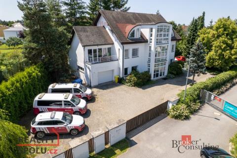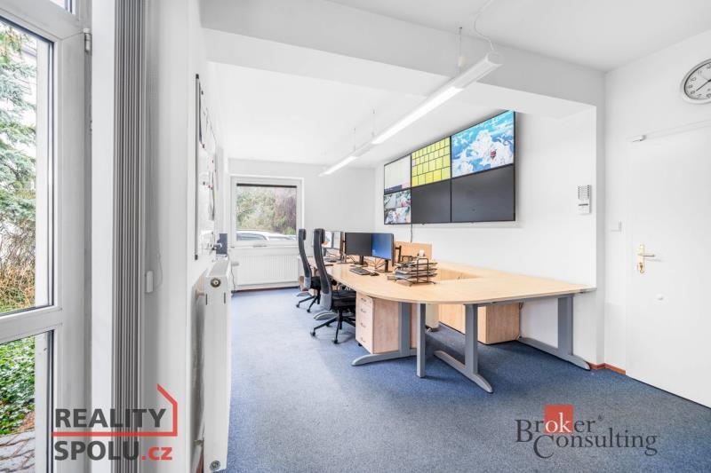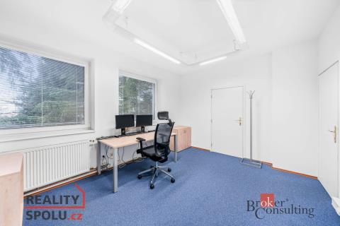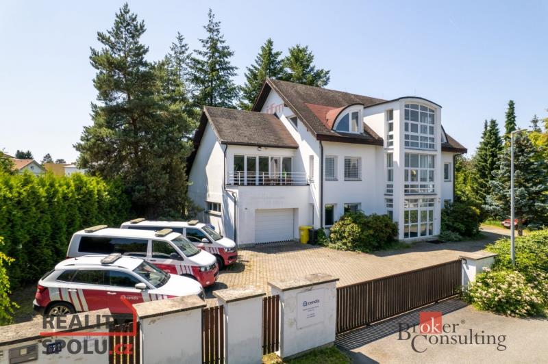 Nabízíme k pronájmu administrativní objekt s vlastním pozemkem v obci Průhonice. Jedná se o třípatrovou budovu o celkové výměře 447 m², včetně parkovacích míst za branou pro minimálně 12 aut. Aktuálně je budova rozčleněna na 9 oddělených místností. Přízemí nabízí vstupní halu, kancelář, zasedací místnost a garáž, která by mohla sloužit jako sklad nebo parkovací prostor. První patro obsahuje pět místností vhodných pro ložnice nebo pracovny, druhé patro pak disponuje dvěma místnostmi a velkým prostorem, ideálním pro společenské aktivity. Nový plynový kotel Viessmann zajišťuje efektivní vytápění a ohřev TUV. Na pozemek je vjezd automatickými vraty a vše je zabezpečeno EZS. Okolní zeleň zajišťuje příjemné prostředí pro relaxaci. Díky výborné dostupnosti Prahy a dálnice D1 je tento objekt ideální pro rodinné bydlení.