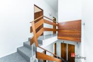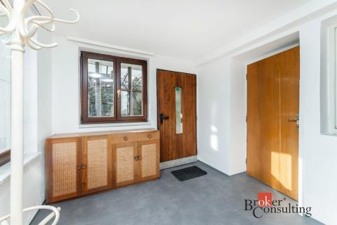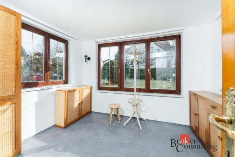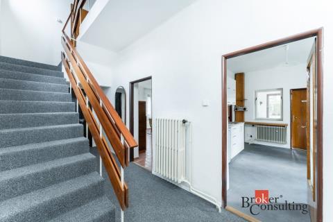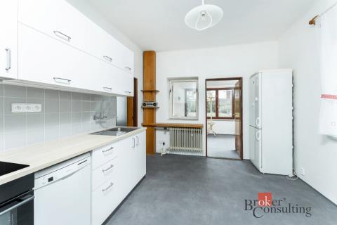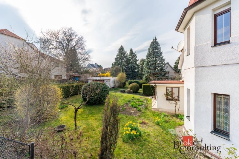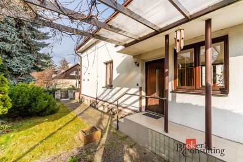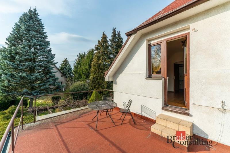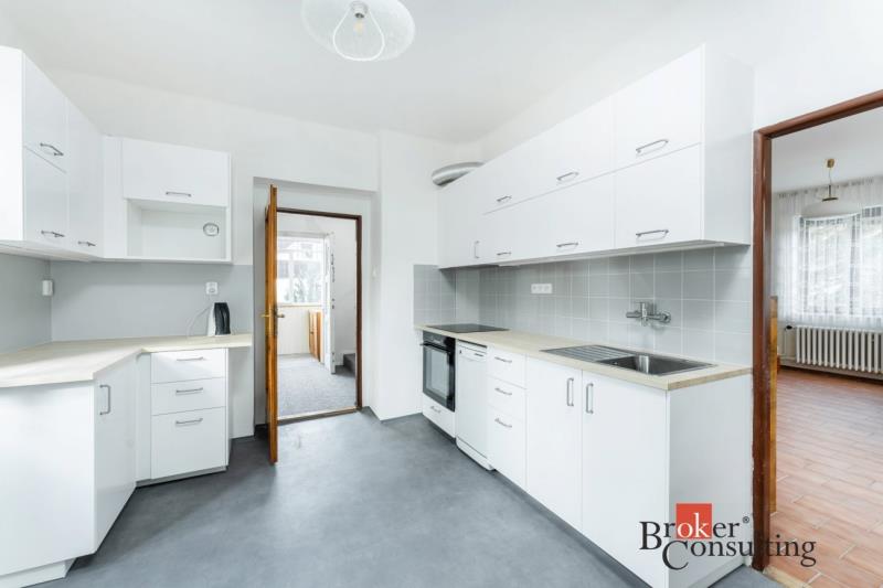 V prvním poschodí je k dispozici nová kuchyňská linka vybavená troubou, varnou deskou, myčkou i lednicí, dále toaleta oddělená od koupelny s velkým sprchovým koutem, prostorný obývací pokoj a komora. Dům disponuje dvěma vstupy - standardně projektovaným hlavním vchodem do předsíně nebo rekonstrukcí přidaným vchodem přes zimní zahradu. Ve druhém poschodí se nachází komora, šatna, toaleta a dvě hlavní místnosti využitelné jako ložnice či například pracovna, jedna místnost má přímý vstup na velkorysou terasu s výhledem do zahrady. Součástí domu je i půda a sklep. Na pozemku je kromě hlavní stavby umístěna také zděná garáž s příjezdovou cestou.