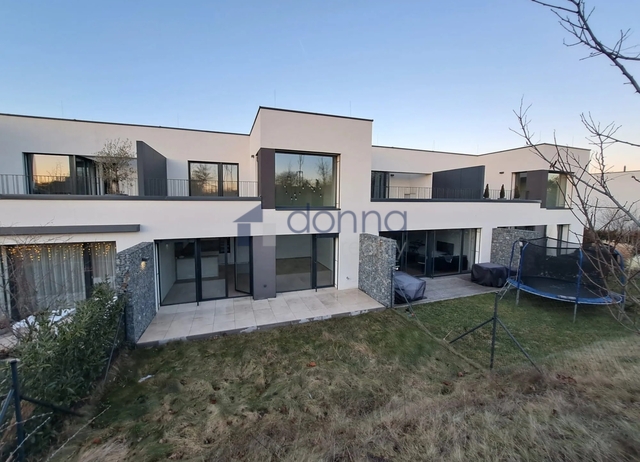 Nabízíme k pronájmu moderní řadovou vilu 5+kk, o ploše 200m² se zahradou 97m², 2x terasa, v exkluzivní lokalitě Waltrovka. Dům je bez nábytku a nabízí v 1. nadzemním podlaží prostorný obývací pokoj s otevřeným stropem, jídelním koutem a plně vybavenou kuchyní (44 m²) s přímým vstupem do zahrady. Dále se na tomto podlaží nacházejí dva pokoje, dvě koupelny se sprchovým koutem a WC, chodba a technická místnost s prostorem pro pračku a sušičku. V 2. nadzemním podlaží jsou další dva pokoje, otevřený prostor vhodný jako pracovna a koupelna s vanou a WC. Dům je postaven z kvalitních materiálů – dubové olejované podlahy, dlažba, předokenní žaluzie, podlahové topení v obývacím pokoji a koupelnach, ostatní mistnosti radiátory, alarm. V 1. podzemním podlaží je k dispozici uzavíratelná garáž s přímým vstupem do domovní jednotky, dále 1 parkovací stání v těchto prostorách domu a prostorný sklep. Připojení Wi-Fi a optické vlákno samozřejmostí. Centrální vytápění, novostavba kolaudovaná v roce 2020. Klidná rezidenční lokalita plná zeleně s výbornou dostupností – v blízkosti metro, vlak, obchody, kavárny, parky a sportoviště. Měsíční zálohy dle spotřeby cca 12 000 Kč, vratná kauce 144 000 Kč. K nastěhování od února 2026. Pronajímatel si vyhrazuje právo výběru nájemce.