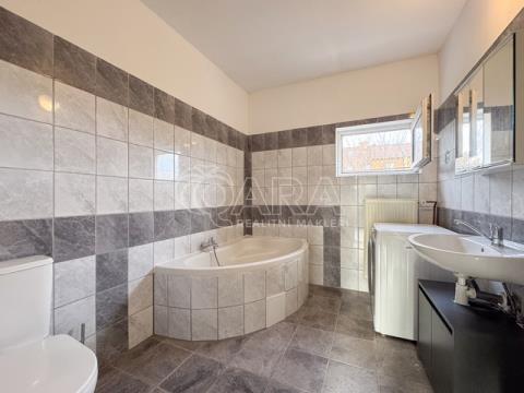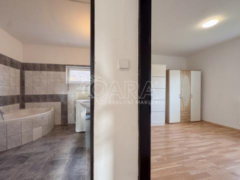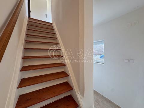 Dům je v dobrém technickém stavu a nabízí praktickou dispozici vhodnou pro rodinu či pár. V přízemí se nachází zádveří, chodba, koupelna se sprchovým koutem a WC, kuchyně a velmi prostorný obývací pokoj s jídelnou, odkud vedou balkonové dveře přímo na menší zahrádku. Po schodišti se dostanete do 2. NP, kde se nachází chodba, tři samostatné obytné pokoje a druhá koupelna se s vanou a WC. Topení je řešené plynovým kotlem a stejně tak ohřev vody. Parkovat je možné přímo před domem, kde je dostatek místa pro dvě auta. K domu náleží jedna garáž, kde je další parkovací stání a její měsíční nájemné činí 1.500,- Kč. Mimo jiné dům doplňuje sklep a kůlna (kolárna) pro skladovací prostory. Zahrada u domu umožňuje příjemné posezení nebo prostor pro menší zahrádku.