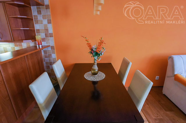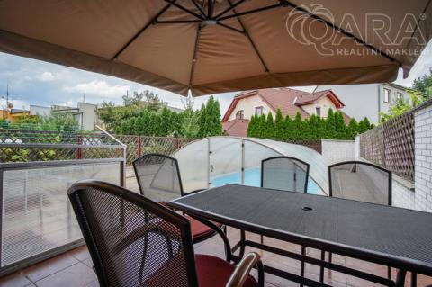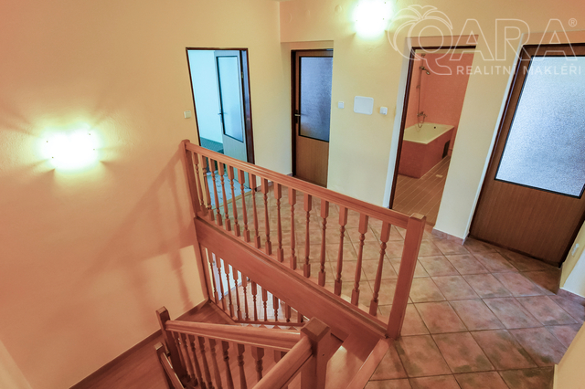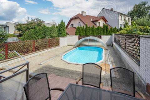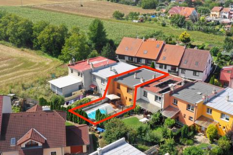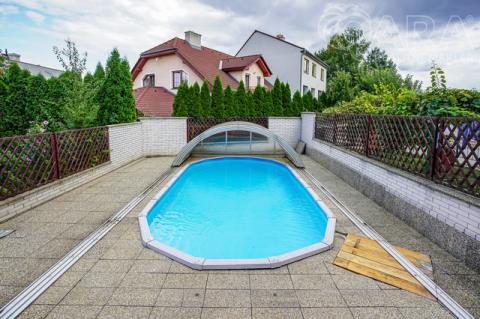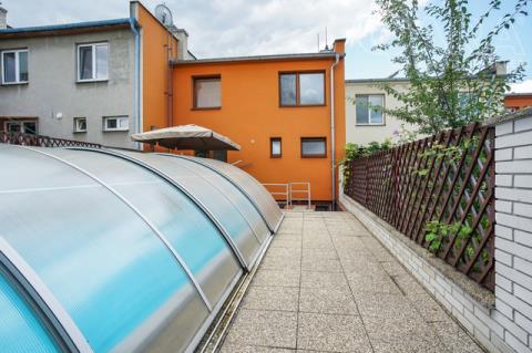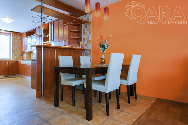 Nabízíme k pronájmu rodinný dům 4+kk s jídelnou, šatnou, terasou, garáží a bazénem ve Vyškově. V přízemí rodinného domu se nachází vstupní hala s krbem, dále technické místnosti (kotelna s kondenzačním kotlem, prádelna se sprchovým koutem a pračkou). V prvním patře je prostorný obývací pokoj propojený s jídelnou a kuchyní, šatna, koupelna (sprchový kout, umyvadlo, WC). Přímý vstup na terasu s posezením a bazénem, ideální pro odpočinek a letní grilování. Kuchyně je vybavena sklokeramickou varnou deskou, myčkou na nádobí, lednicí. Ve druhém patře jsou k dispozici tři samostatné pokoje, z toho dva propojené balkonem, dále koupelna s vanou, umyvadlem a WC. Dům se nachází v klidné ulici, s možností parkování přímo před domem, nedaleko centra Vyškova. Měsíční nájemné je 33.000,- Kč + 8.000,- Kč zálohy na energie. Součástí záloh je připojení k internetu včetně sledování TV přes internet. Majitel požaduje kauci ve výši jednoho měsíčního nájmu včetně energií. Provize RK je 33.000,- Kč.