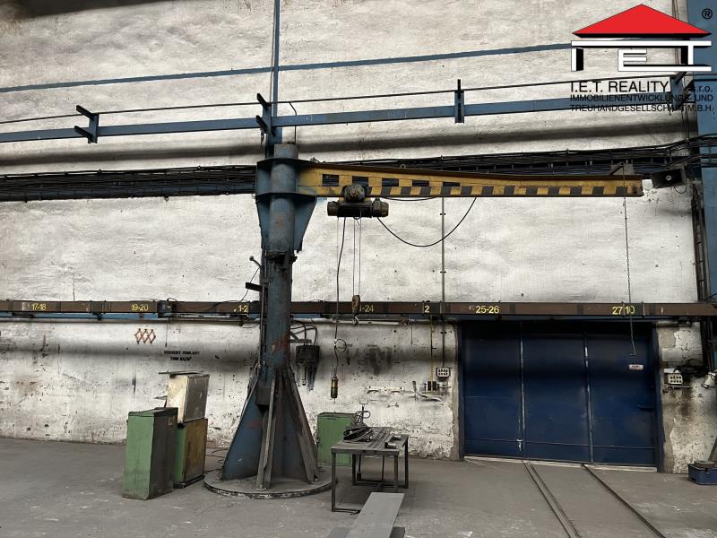 K pronájmu nabízíme výrobní/skladovou halu o ploše 1 992 m² s vlastními vraty 5 × 5 m, dvěma mostovými jeřáby (12,5 t a 5 t) a třemi sloupovými jeřáby. Hala má nosnost podlahy 7 000 kg/m², výšku jeřábů 11 m a je možné ji vytápět. Technické parametry: • dva mostové jeřáby ovládané dálkovým ovladačem – nosnost 12,5 t a 5 t • tři sloupové jeřáby • výška jeřábů 11 m – ideální pro manipulaci s těžkými břemeny a možnost vysokého skladování • nosnost podlahy 7 000 kg/m² • dostatek denního světla díky stropním světlíkům + modernizované osvětlení pro noční provoz • možnost vytápění Umístění: • hala je situována uprostřed výrobního areálu • výborná dostupnost – do 1 km od rychlostní komunikace, mimo centrum města Prostor je připraven k okamžitému využití. Neváhejte nás kontaktovat pro více informací a domluvte si osobní prohlídku, kterou vřele doporučujeme.