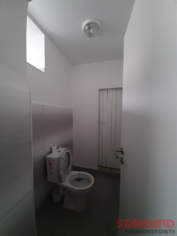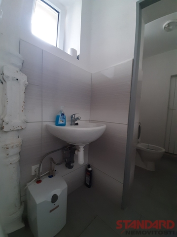 Plastová okna přinášejí dostatek denního světla a zároveň dobré tepelně-izolační vlastnosti. Sociální zázemí je řešeno ve společných prostorách na chodbě přímo naproti kanceláři – k dispozici jsou dvě nově zrekonstruované toalety s umyvadlem, udržované ve velmi dobrém stavu.