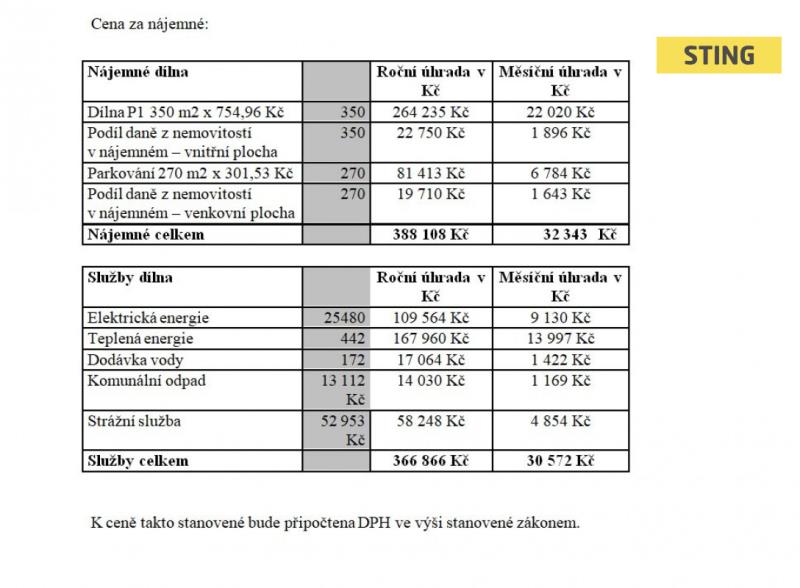 Nabízíme k pronájmu prostor o velikosti 350 m2 vhodný pro provoz autodílny na opravu nákladních vozidel . V objektu se nachází dva kanály i s kanálovými zvedáky. Vlézt by se tam měl i kamion s návěsem. Součástí je sklad, technický prostor a malá šatna. WC je k dispozici je vedlejší budově. Součástí pronájmu jsou venkovní prostory a výměře 270 m2. Objekt se nachází v uzavřeném areálu hlídaný strážní službou 24 hodin denně. Kauce je ve výši tří měsíčních plateb a provize rk je ve výši jednoho měsíčního nájmu včetně DPH. V případě zájmu mne neváhejte kontaktovat.
