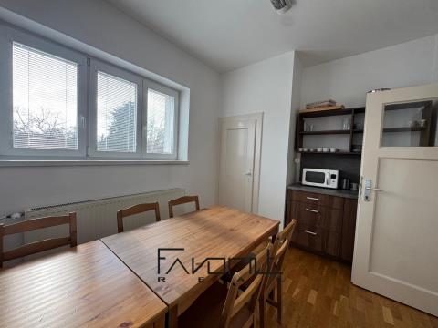 Pronájem komerčního domu – Závodní ulice, naproti městského stadionu Nabízíme k pronájmu samostatný komerční dům ve velmi dobrém a udržovaném stavu na atraktivní adrese – Závodní ulice, naproti městského stadionu. Nemovitost je vhodná zejména pro kanceláře, sídlo firmy, školící centrum, ordinaci nebo kombinaci administrativy a zázemí firmy. Dispozice domu: 1. NP (92 m²) • zasedací místnost • menší místnost s průchodem na WC / koupelny • kuchyňka • šatní skříň u vstupu 2. NP (92 m²) • kuchyňka • 3× pokoj / kancelář V domě se celkem nachází 4 toalety. Nemovitost je kompletně podsklepená, což poskytuje další praktický úložný prostor. Technické vybavení: • tepelné čerpadlo • klimatizace • možnost ponechání části vybavení Další výhody: • samostatná garáž / sklad (61 m²) na pozemku • velký pozemek kolem domu (769 m² zahrady) • dostatek parkovacích míst přímo na pozemku Výborná dostupnost a viditelné místo vhodné pro podnikání. Volné od 1. 6. 2026