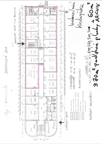 Výhodou je velká variabilita prostoru, možnost pronájmu částí celku od 40m2 užitné plochy (dvou kanceláří) viz foto plánku. Je tedy možné pronajmout 40m2,60m2,80m2,100m2,atd. - až 370m2 užitné plochy kanceláří. Plus ještě archiv což je dalších 60m2. Sádrokartonové příčky mezi kancelářemi lze upravit (upraví nájemce na vlastní náklady po souhlasu pronajímatele). Pro aktuální obsazenost více info po telefonu.