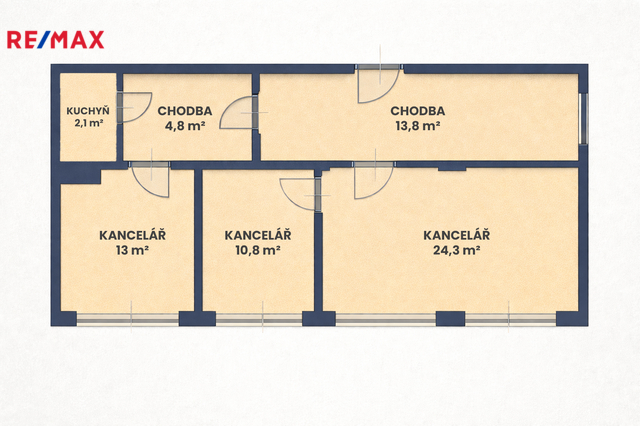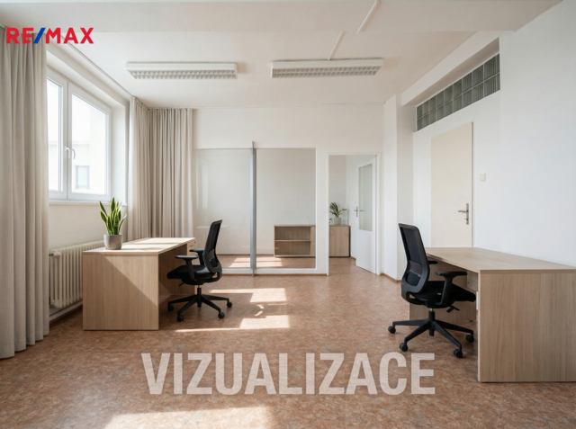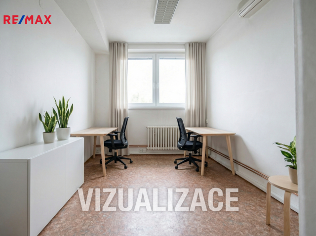 Nabízíme k dlouhodobému podnájmu kancelářské prostory v Brně–Maloměřicích, na ulici Selská, ideální pro týmy i jednotlivce, kteří ocení praktičnost, dostupnost a rozumné náklady. Kanceláře se nachází v 1. patře (2. NP) bez výtahu, nad komerčními prostory (showroom s luxusním nábytkem). Dispozice a plocha Prostory tvoří 3 kanceláře + kuchyňka a WC s celkovou užitnou plochou 66,7 m²: kancelář 13 m² kancelář 24,3 m² (průchozí) kancelář 10,8 m² (přístupná z průchozí místnosti) chodba 16,5 m² kuchyňka 2,1 m² Dispozice umožňuje flexibilní uspořádání a je vhodná až pro cca 8 pracovních míst. Technické informace: - kanceláře jsou nezařízené (možnost přizpůsobení vlastním potřebám) - klimatizace k dispozici - internet zaveden (není součástí nájemného) - základní kuchyňská linka (1,2 m) - WC (ve spodním patře) Dostupnost a parkování: - parkování přímo před budovou - zastávka MHD cca 50 m - velmi dobrá dostupnost autem i hromadnou dopravou Vhodné využití Prostory jsou ideální zejména pro: - IT týmy a vývojáře - freelancery - architekty, projektanty, designéry - menší e-shopy - administrativní, kreativní nebo technické profese Finanční podmínky - Nájemné: 15 400 Kč / měsíc + DPH - Zálohy na energie a služby: 3 720 Kč / měsíc + DPH - Kauce : 15 400 Kč + DPH - Provize RK: 19 120 Kč + DPH - Forma užívání: dlouhodobý podnájem - Dostupnost: k dispozici ihned Shrnutí: Funkční kancelářské prostory s klimatizací, parkováním a výbornou dostupností. Ideální volba pro firmy a jednotlivce, kteří hledají praktické pracovní zázemí za férových podmínek.