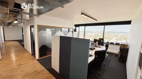 Nabízíme k pronájmu moderní kancelářské prostory o výměře 483 m² v 17.NP v prestižním administrativním komplexu Šumavská Tower, budova B. Prostory jsou připravené rovnou k nastěhování – dispozice byla uzpůsobena předchozímu nájemci, takže žádné bourání, malování, zdržování. Stačí si přinést notebook a začít. Výhled? Super. Přístup? 24/7. Vybavení? Kompletní – zdvojené podlahy, zátěžové koberce, otevíratelná okna, žaluzie, vysokorychlostní internet, tepelná čerpadla. Recepce, výtahy, ostraha, parkování? Samozřejmost. Lokalita v Králově Poli má všechno, co potřebujete – univerzity, služby, supermarket, oběd za rohem a centrum Brna do 5 minut MHD. V rámci projektu "Snížení energetických ztrát budovy" byly realizovány opatření ke zvýšení energetické účinnosti, včetně instalace tepelných čerpadel a modernizace systémů vytápění, chlazení a osvětlení. Zkrátka kanceláře s rozhledem. Doslova. V přízemí budovy i okolí najdete restaurace, kavárny, potraviny, drogerii, banku, lékárnu a další služby. Možnost parkování v krytých garážích i venkovních stáních.