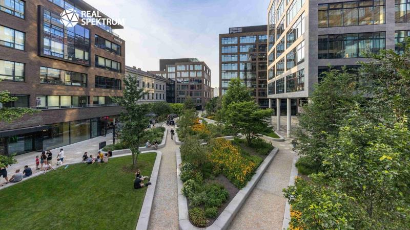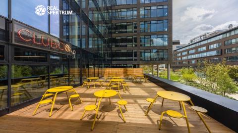 Zdvojená podlaha, žaluzie, klimatizace, zátěžové koberce, otvíratelná okna, vysokorychlostní připojení k internetu, recepce, nepřetržitá ostraha objektu včetně kamerového systému. Bezbariérový přístup 24/7, výtahy. Kavárna, restaurace, banka, pekárna, kadeřnictví, fitness, květinářství, galerie a další služby v areálu. Možnost stravování v centru - restaurace, kavárny.