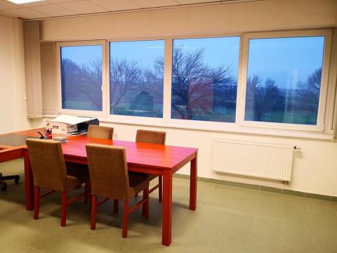 .Nabízíme nájem moderních kanceláří v 1 patře víceúčelové budovy, pod uzavřením, Kozomín - poblíž exitu D8 ----------------------------------- Celková velikost 195 m2 Nájem 169,-Kč/m2/měsíc + energie ---------------------------------- Nabízený prostor se skládá s 5 -6 ti kanceláří, 2x WC, kuchyňka a chodby. Vše moderní a nové. Kanceláře uvolněné, podlaha dlažba, okenní vertikální žaluzie, přípojky na internet. 2x samostatné WC a umyvadlo - foto. Prostor pod uzavřením jako celek, uzamykatelná část objektu. Venkovní parkování min. pro 10 osobních aut. V případě potřeby je na patře možno uvolnit and #34;skládek s regály and #34; ( foto ), popřípadě v rámci objektu skladově-výrobní prostor až 250 m2 s vlastním vstupem z venčí. Nájem možný IHNED ! ARCHA - průmyslová kancelář, Pavel Černý