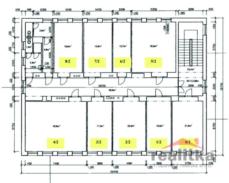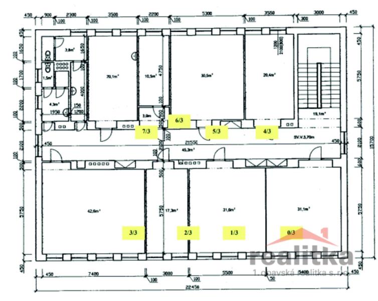 Nabízíme zrekonstruované prostory k pronájmu vhodné jako kanceláře, sídlo firmy atd. !!! Kancelář ve III.patře o výměře 30m2, nájem 2.850,-Kč, služby 1580,-Kč, poplatek RK 4.000,-Kč. K dispozici další kanceláře které se nacházejíve III. poschodí, 7 místnosti o celkové ploše 200m2 administrativní budovy. Každé patro má samostatné WC . Kanceláře mají různé výměry od 12 m2 do 42 m2. Některé kanceláře jsou propojeny. Součástí nemovitosti je odstavná zpevněná plocha před budovou - možno využít jako parkoviště. Prostory se nachází v areálu firmy KHMC s.r.o. na ulici Palhanecká 16 b, OPAVA 7. Nemovitost je u hlavní frekventované komunikace. Kolem areálu vede nový obchvat z Kateřinek kolem Stříbrného Jezera do Jaktaře, hlavní spojnice ze směru Ostrava na směr Krnov-Bruntál. Dostupnost z centra města je autobusem č. 216 , zastávka v dosahu 100m..Prostory jsou volné a ihned k užívání. Objekt je elektronicky střežen a je připojen k pultu PCO, dále je vybaven protipožárními senzory. Provize (slouží zároveň jako rezervace) 4tis. Kč č. kanceláře nájemce výměra nájemné služby 3.podlaží 30m2 2.850 Kč 1580 Kč Parkovací místo 10 m2 250 Kč