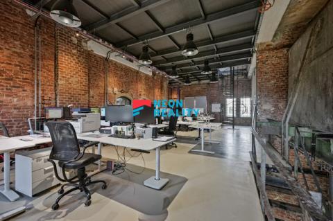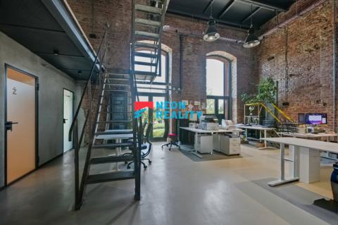 Přízemní prostor vhodný pro showroom, ateliéry, kancelářské patro v horním podlaží pro kreativní týmy, projekční kanceláře či startupy.