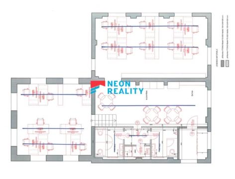 V nabízených prostorech se nachází dvě samostatné kanceláře pro administrativu, otevřená vstupní místnost pro zázemí případné recepce, kuchyňku, samostatné toalety a sprcha, vše o celkové ploše 144 m2. Příjemným bonusem je balkón o výměře 25 m2. Větší kancelář v podobě open office má rozlohu 48 m2.