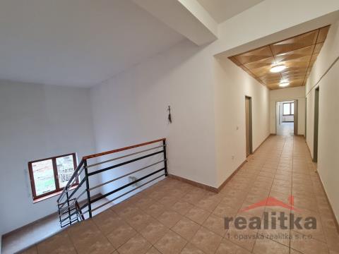 Nabízíme k pronájmu nebytové prostory v Oticích, okr. Opava. K dispozici je celkem 5 místností, kuchyňka, koupelna, WC a parkovací místa před budovou. Podlahová plocha místností a chodeb bez schodiště je 144 m2. Do prostor je samostatný vstup. Budova i vnitřní prostory jsou ve velmi dobrém stavu, po rekonstrukci. Příjezd k budově je z centra obce od kapličky kolem zastávky MHD. Prostory jsou vhodné jako kanceláře, nebo dílny pro lehký, nerušivý provoz, ordinace apod.. Zálohy na teplo 3000,-Kč měsíčně, zálohy na vodu a elektřinu dohodou podle způsobu využití prostor. Vratná kauce 25000,-Kč, provize RK 25000,-Kč. Ihned volné.