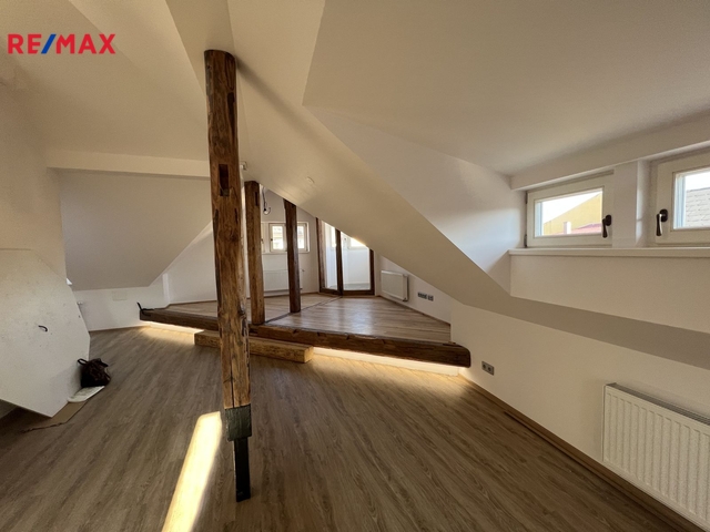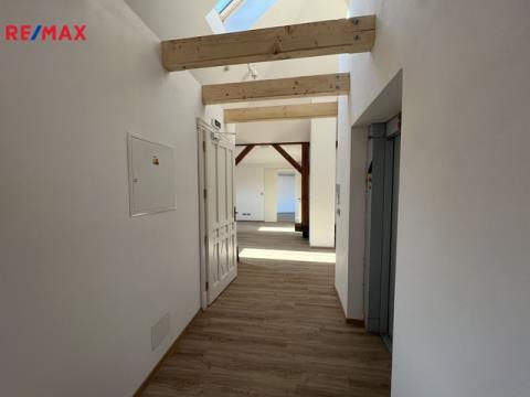Exkluzivně Vám nabízíme pronájem zcela nových luxusních a atraktivních prostor v domě s výtahem na velmi lukrativním místě v centru města Rožnov pod Radhoštěm na ulici Nádražní. Z přízemí Vás pohodlně vyveze výtah až do 2. patra, přímo do nádherných prostor o celkové rozloze 148 m2 + 2 terasy o rozloze 26 m2, které jsou umístěny na střeše s přímým východem z kanceláře. Takže s klientem může probíhat obchodní schůzka i na střešní terase s výhledy do okolí. Nadstandartní prvek v nemovitosti je věžička s výhledy a vyvýšeným podsvětleným pódiem z masivního dřeva ,takže pokud si tam umístíte pracovní stůl, můžete sledovat dění přímo v centru města. Celkově jsou tyto prostory jsou velmi zajímavě řešeny s původními prvky - trámy a nabízí se tak budoucím klientům např. jako prostor ke kancelářím, nebo ateliér pro architekta, nebo ateliér pro malíře, fotografa atd. Celkem s terasami se tedy pronajímá prostor o celkové rozloze 174 m2. Dle dohody s majitelem lze pronajmout parkovací místo u nemovitosti. Rekonstrukce proběhla velmi citlivě k původnímu stavu nemovitosti. Cena za m2 kanceláře je 208,33 Kč za m2/ měsíc +DPH, cena za pronájem teras je 83,33 Kč /měsíc za m2. Nájemce prodejní plochy musí být plátce DPH. Cena celkového měsíčního nájmu je 33.029 + DPH + zálohy na média. Neváhejte si domluvit prohlídku tohoto obchodního prostoru. Jitka Fröhlichová, RE/MAX Vaše realitní makléřka pro tuto oblast. Budu se na Vás těšit. Pronajímající si vyhrazuje právo vybrat nájemce na základě jím zvolených kritérií.
