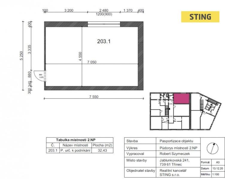 Nabízíme prostory k podnikání jako kancelář nebo provozovna v II. NP objektu na ul Jablunkovská.