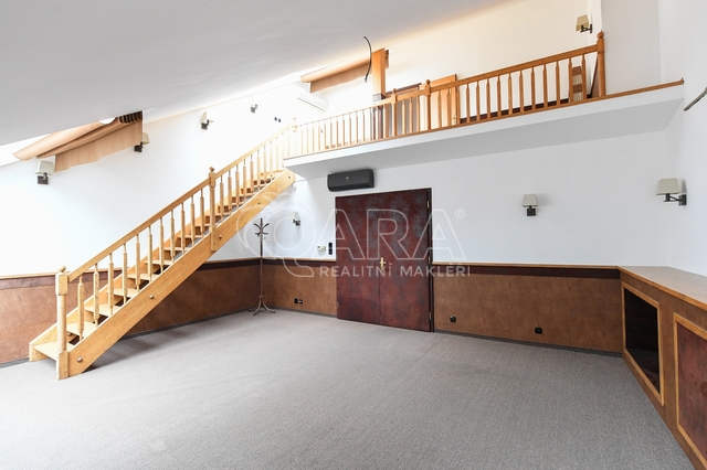 Exkluzivní nabídka pronájmu výjimečného mezonetového bytu o dispozici 3+1 s balkonem a garážovým stáním, ul. Spálená, Praha 1. Byt je umístěn ve 4. a 5. NP tradičního činžovního domu s výtahem. Tento prostor je možné pronajmout jako kancelář nebo na bydlení. Prostor o celkové výměře 140 m² (vnitřní plocha – 127 m², balkon – 13 m²) je zajímavě dispozičně řešen a tvoří jej: velkorysá vstupní hala, hlavní pokoj se vstupem do patra přes galerii, pokoj (ložnice), koupelna s vanou a WC, kancelář s nábytkem na míru, kuchyně, technická místnost a druhá koupelna s vanou a WC. Z kanceláře a kuchyně je možný vstup na balkon, který je orientován na západ do klidného dvora. Stejnou orientaci okna pak má pokoj v patře. Hlavní pokoj má velkorysá střešní okna orientovaná na opačnou stranu do ulice Spálená s výhledem na střechy okolních domů. Prostor je vybaven klimatizací. Kuchyně je plně vybavená, v pokoji je velká vestavěná skříň. Po obvodu hlavního pokoje je instalován skříňový systém, který poskytuje dostatek úložného prostoru a je zde také zabudovaná výsuvná televize. Podlaha je parketová, ve vstupní hale a v hlavním pokoji zakrytá kobercem, v koupelnách je položena dlažba. Vytápění zajišťuje vlastní plynový kotel, který také ohřívá vodu. Do prostoru je velmi snadný přístup výtahem přímo až ke vstupním dveřím. Součástí nájmu je také garážové stání ve dvoře domu. Skvělá dopravní obslužnost: stanice metra B – Národní třída a stanice TRAM (č. 22 a další) jsou téměř před domem. V místě naleznete vše co lze hledat v centru velkoměsta – obrovské množství služeb, restaurací, atd. Společně s nájemným se hradí měsíční poplatky ve výši 1.500 Kč + elektřina a plyn se převádí na nájemníka. Kauce ve výši jednoho nájmu, provize ve výši jednoho nájmu. Volné ihned. Pokud máte zájem o prohlídku, vyplňte prosím formulář níže, co nejdříve se vám ozveme.