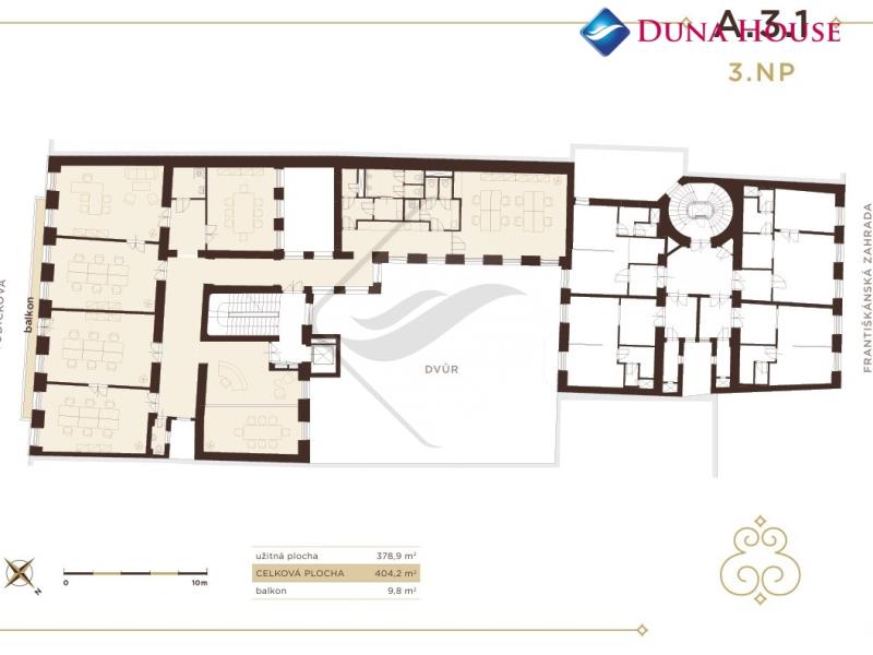 Budova nabízí prémiové komerční prostory s širokými možnostmi využití. Díky svému vysokému standardu dokončení a velkorysým prostorům může být budova ideálním řešením pro firemní klientelu i pro notářské či advokátní kanceláře, hledající prestižní adresu uprostřed centra Prahy.