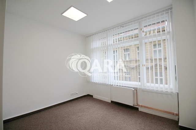 Pronájem kanceláře, místnost 27 m2- rozdělena příčkou, možno tedy použít na klientskou část a druhou půlku pro neprůchozí kancelář. Po rekonstrukci, ve 3. patře secesního domu s výtahem a nepřetržitou ostrahou, sociální zázemí a kuchyňka na chodbě, na podlahách koberce, telefon, internet, možno zajistit úklid za poplatek, možnost pronájmu reklamních vitrín v pasáži nebo na sloupech domu. Prostory se nacházejí v samotném centru Prahy, s veškerou občanskou vybaveností a výbornou dostupností MHD. Doporučujeme.