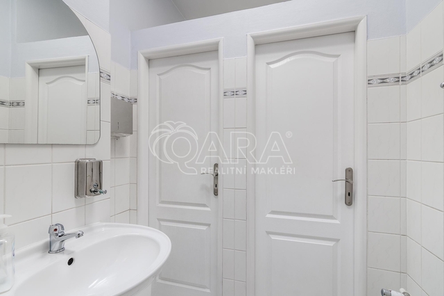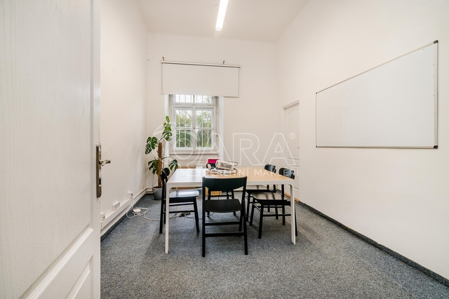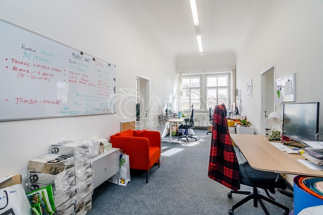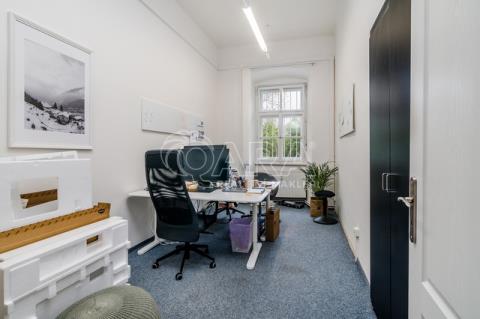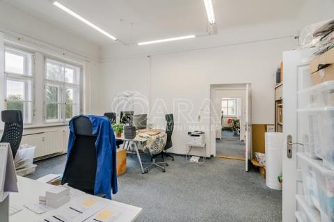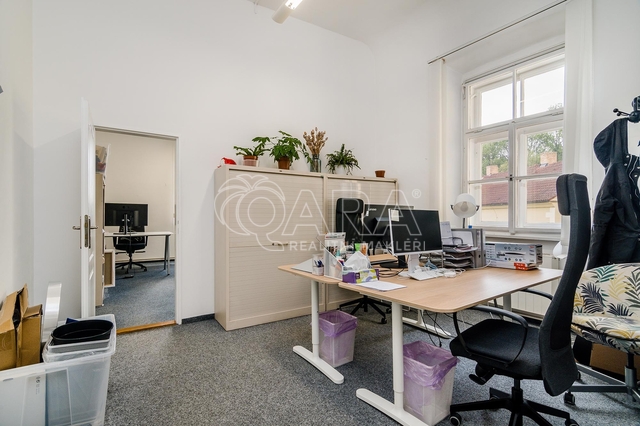 Chcete pracovat na zámku? Nabízím Vám zprostředkování pronájmu kancelářského prostoru o velikosti 270,6 m2 v prvním patře Záběhlického zámku v ulici Za Potokem 46/4, přímo u zastávky autobusu U Lípy. Kancelář vznikla v novobarokní budově, jejiíž historie sahá do 13. století, respektive 17. století, kdy byla přestavena z tvrze na zámek. Prostory disponují 10-ti samostatnými kancelářemi, které lze však vzájemně procházet, tudíž můžete firemní tým efektivně rozmístit, tak aby jednotlivá oddělení mohla mezi sebou efektivně komunikovat a spolupracovat, viz přiložený půdorys v inzerci. Dále je k dispozici malá místnost přístupná z haly, sloužící jako serverovna. Kuchyňka je mezi kancelářemi. Přístupná je velká terasa, kterou mohou nájemníci využívat k odpočinku, ale třeba i ke kancelářské práci na čerstvém vzduchu. V rámci nájmu můžete v areálu zámku parkovat až 6 automobilů. Záloha na poplatky a spotřebu 27.000 Kč/měsíc + DPH, (zahrnuto vytápění, ostraha, voda, odvoz odpadu, údržba společných prostor) a to i včetně odběru elektřiny, čtvrtletně vyúčtovaná dle skutečné spotřeby. Do prostor je zaveden internet optickým vláknem. V areálu je k dispozici nabíječka pro elektroauta. Třída energetické náročnosti neudáváme, jelikož na památkově chráněné budovy se nevztahuje povinnost vytvářet PENB. Kauce ve výši dvou měsíčních nájmů. Pouze k dlouhodobému pronájmu, nastěhování od 15.2.2026. Cena za pronájem je uvedena bez DPH a při pronájmu tohoto prostoru neplatíte provizi realitní kanceláři.