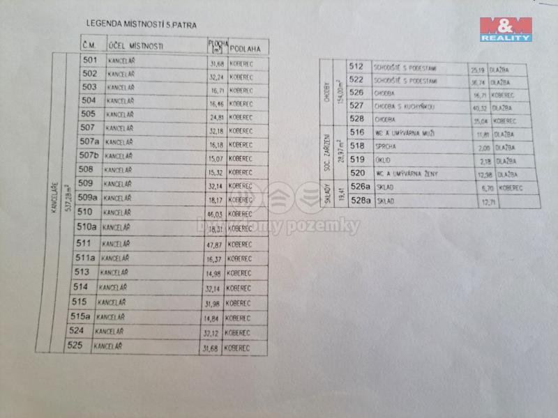Bez provize a vratné kauce nabízíme k pronájmu samostatné kancelářské prostory o celkové užitné ploše 288 m² v klidné části Brno - Lesná. Prostory se nachází v pátém patře budovy se sedmi nadzemními podlažími a jedním podzemním, kde je k dispozici jídelna. Kancelářský prostor je klimatizován, na podlahách je položen koberec. Součástí kancelářského prostoru je i menší místnost (12m2), kterou lze využít jako sklad, nebo odkládací prostor. Každé podlaží v budově disponuje společným sociálním zázemím, včetně kuchyňky a toalet pro muže a ženy. Výhodou je výborná dopravní dostupnost, s možností příjezdu osobním i nákladním automobilem a zastávkou MHD vzdálenou jen 2 minuty chůze. Parkování možné v blízkosti budovy, nebo na placeném parkovišti v areálu u budovy (cena parkování není součástí nájmu). Budova je celodenně střežena a nabízí neomezený přístup. Pro více informací kontaktujte makléře.