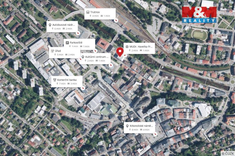 Nabízíme komerční prostor k pronájmu v centru Trutnova, Spojenecká ulice. Prostor 6,2 x 4,7 m se nachází v 2. nadzemním podlaží. Přístup je bezbariérový, v domě je výtah. Možnost využití jako kancelář, obchodní prostor. WC dámské, pánské je na chodbě. V místě je velké parkoviště, autobusové a vlakové nádraží. Občanská dostupnost a vybavenost je velmi dobrá. Více informací u realitního makléře.
