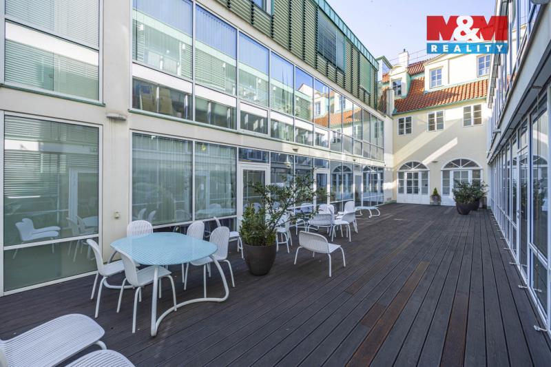 Nabízíme k pronájmu reprezentativní kancelářské prostory o velikosti 82 m² v historické budově v centru Prahy. Kancelář je řešena jako open space s oddělenou zasedací místností a office call boxem pro nerušené telefonní hovory. Součástí prostoru je také venkovní terasa se sezením, která nabízí příjemné zázemí pro krátký odpočinek či neformální jednání. Vybavení kanceláře je možné upravit dle dohody s nájemcem. Parkování je zajištěno v zakladačích ve dvoře budovy. Velkou výhodou je atraktivní a velmi dobře dostupná lokalita v pěší vzdálenosti od: Masarykovo nádraží Václavské náměstí hlavní pošty V okolí se nachází kompletní občanská vybavenost včetně notářských a právních služeb, restaurací, obchodů a dalších služeb. V případě zájmu o více informací nebo prohlídku nás neváhejte kontaktovat.
