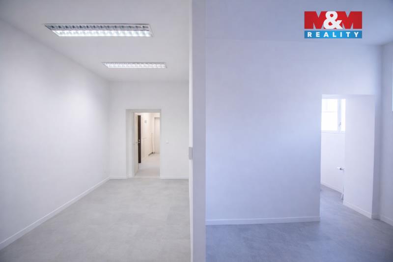 Nabízíme k pronájmu lukrativní nebytové prostory kolaudované jako kanceláře v centru města, které jsou situované v ikonické budově bývalého Tuzexu. Výhodou jsou 2 velké výlohy, které lze využít k propagaci, dále 2 reklamní výstrče schválené památkáři. Prostory disponují hlavní místností o velikosti 58,88 m2 a menší kanceláří, zázemím s kuchyňkou, toaletou a skladem. celková výměra činí 99,31 m2. Stav je nyní připraven k doladění dle Vašich požadavků, nyní se instaluje nová klimatizace a rekuperace. Prostory mají vlastní plynový kotel, svůj elektroměr a podružný vodoměr. Po dohodě lze pronajmout také garážová stání ve vnitrobloku. V domě mimo jiné sídlí notářská kancelář, kterou můžete využít pro ověřování podpisů. Pro více informací kontaktujte makléřku.