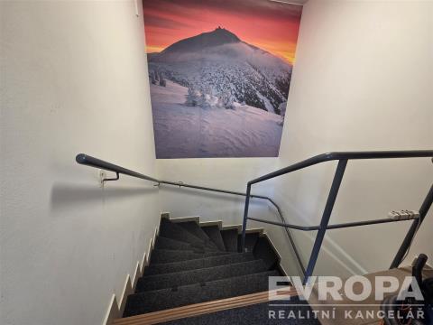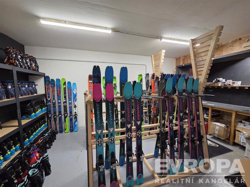 Špindlerova Mlýna. Prostory jsou ideální pro provozování obchodu, showroomu, kanceláří či jiné podnikatelské činnosti. Dispozice prostoru: Přízemí (61 m²): reprezentativní obchodní prostor, v současné době využívaný jako prodejna sportovního vybavení Suterén (108 m²): multifunkční prostory sloužící jako půjčovna, obchodní část a skladové zázemí WC se nachází v suterénu Další informace Nájemné a podmínky pronájmu budou sděleny na vyžádání u makléře. Prostory budou k dispozici od 1. 5. 2026. Prohlídky jsou možné po předchozí domluvě, včetně víkendů.