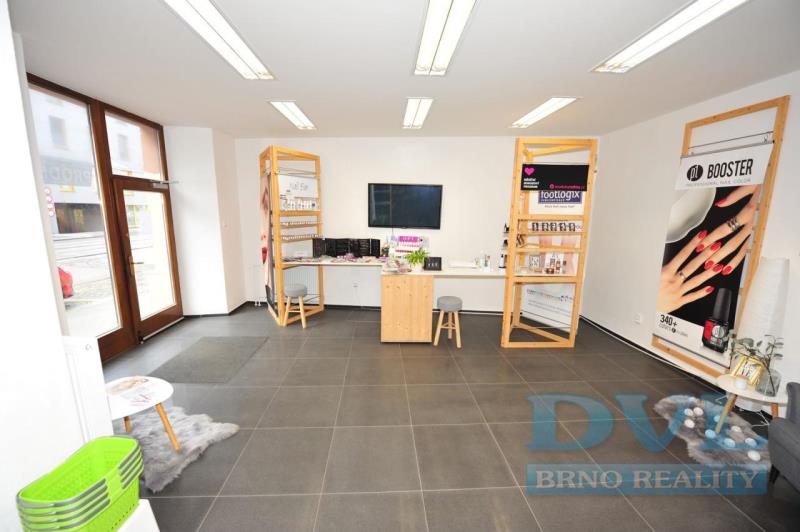 Pronájem obchodu - obchodních prostor v blízkosti centra Brna, v ulici Hybešova. Prostory v přízemí, s přímým vstupem z ulice. Jsou velmi pěkné, po rekonstrukci. Celková plocha je 89,8 m2: - prodejní plocha 65,25 m2 + zázemí 26,09 m2 (sklad, kancelář, sociální zařízení). Nájemné měsíčně včetně služeb 23984 Kč + DPH. Navíc se platí zálohy na elektřinu, plyn a vodu. Platí se provize RK. Průkaz energetické náročnosti budovy nebyl dodán, proto uvádíme třídu G. 90 m2