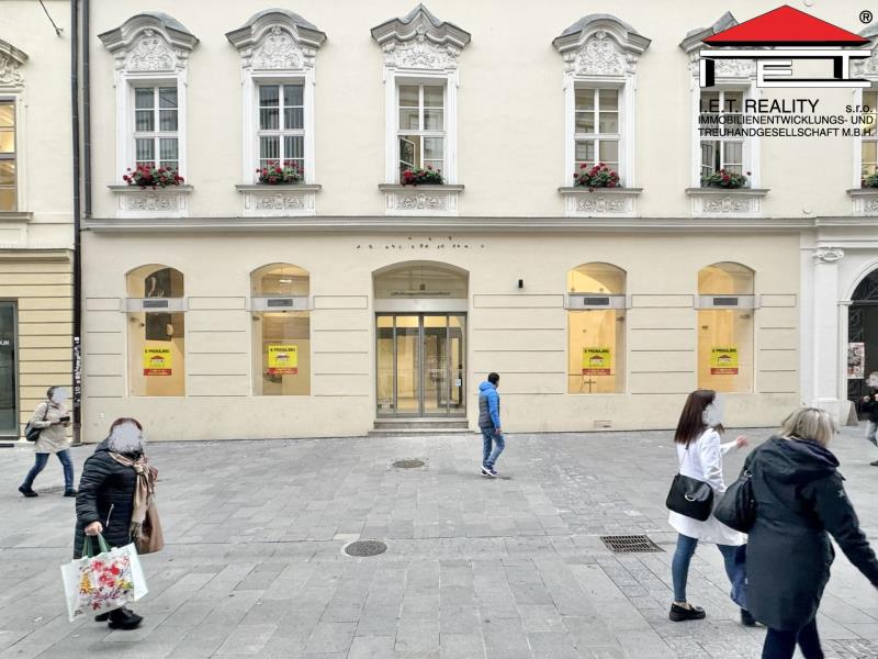 V zastoupení majitele Vám nabízíme příležitost k pronájmu reprezentativního obchodního prostoru situovaného v pěší zóně na ulici Kobližná. Prostor je vyklizený, výhodou je výborná viditelnost pro kolemjdoucí, přímý vstup z ulice, velký počet výkladců či vlastní toaleta a zázemí. Pronajímaný prostor je členěn na přízemí (91,08 m²), nadzemní galerii (13 m²) a suterén (156,31 m²). Pro více informací nás neváhejte kontaktovat, doporučujeme osobní prohlídku. Na závěr upozorňujeme, že zatím nebyl dodán průkaz energetické náročnosti budovy, a proto jsme dle zákona povinni uvést třídu "G".