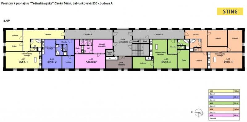 Nabízíme k pronájmu obchodní prostory s výtahem, ve zcela zrekonstruovaném objektu "Těšínské sýpky-BUDOVA A“, vhodné jako prodejny, restaurační zařízení, sídlo firmy, atd. na ulici Jablunkovská v Českém Těšíně, s parkováním v objektu areálu. Prostory jsou po kompletní rekonstrukci a plně vyhovují současným požadavkům na funkční vybavení, energetické úspory, komfort vnitřního prostředí staveb či požární bezpečnost. Jedná se o prostory při sjezdu z hlavní ulice Jablunkovská, v blízkosti hranice s PL a nájezdem na D48 s návazností na I/48 (E462) Polsko. Prostory s výtahem, vysokorychlostním internetem, s vlastním sociálním zázemím, s možností klimatizace v pronajatých prostorách. 1.NP ( přízemí) o výměře 491 m2, ideální pro obchody ( 6 obchodních prostor o výměře 75-84 m2), s možností propojení. K pronájmu jsou dále i prostory ve 2.NP-3.NP ( cena pronájmu 208,-Kč/měsíc). 2. NP ( 1 patro) o výměře 451 m2, ideální jako kancelářské či skladové prostory, lékařské ordinace (2 prostory o výměře 204 + 207 m2) s možností rozdělení na poloviční plochu. 3. NP (2 patro) o výměře 451 m2, ideální jako kancelářské či skladové prostory, lékařské ordinace (2 prostory o výměře 204 + 207 m2) s možností rozdělení na poloviční plochu. Výborná lokalita se skvělou dostupností. Výhodou i možnost pronájmu bytové jednotky ve 4.NP (3 patro): 4 bytové jednotky ( cena na vyžádání).