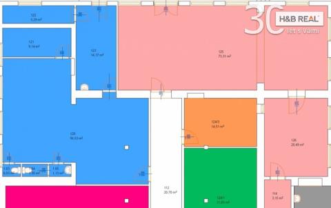 Pronájem vekého komerčního prostoru (195 m2) v přízemí administrativní / obchodní budovy na frekventovaném místě blízko centra města Hranice. Prostor je dispozičně rozdělen na několik místností o různé velikosti (viz půdorys - modré a oranžové místnosti). V posledních letech byly prostory využívány pro obchodní činnost, pro mimoškolní aktivity dětí, ale také např. jako čajovna, kavárna. Pro tyto účely byl interiér postupně renovován a zařízen. Součástí pronájmu je mj. barový pult a skříňky a kuchyňská linka (viz fotografie). Celá budova prošla před několika lety kompletní rekonstrukcí – mj. nová plastová okna, plovoucí podlahy, parapety, omítky, rozvody elektřiny. Prostor je přístupný chodbou přímo z ulice, ale rovněž např. pro zásobování ze zadní strany, ze dvora za budovou. Přístup do budovy je možný 24 hod. denně.