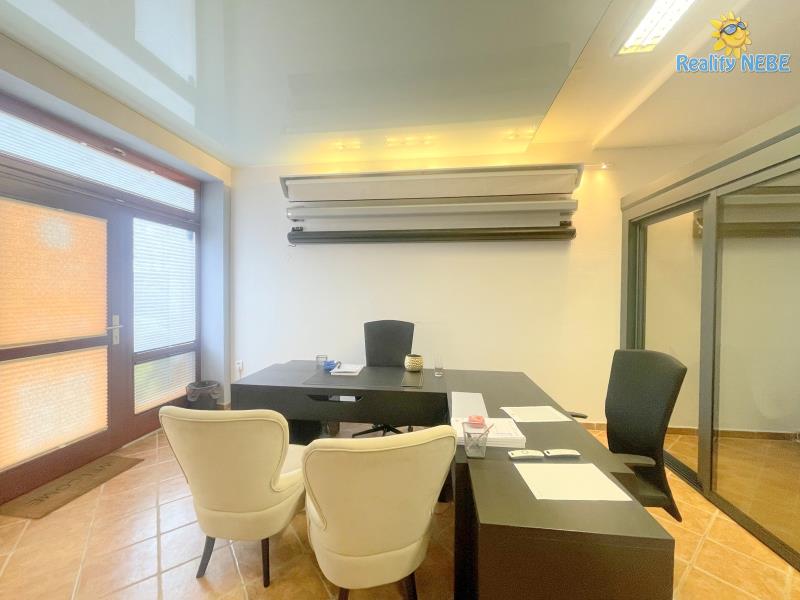 Pronájem komerčního prostoru 95m2 Budějovická Jesenice u Prahy. Obchodní prostor se nachází ve frekventované části naproti obchodního centra (Žabka, Ella) a zastávky bus. Komerční prodejní prostor má výlohu do ulice a vstup z parkoviště s dostatkem parkovacích míst. Velký prostor má 75,m2 s dlažbou, osvětlením, vytápěním, klimatizací. Další prostor má 13,5m2, kde je umístěno veškeré technické zázemí a regulace teploty. Koupelna 5,5m2 se sprchou a toaletou, žebrovým topením. Výstup z komerčního prostoru na stranu, kde je vyčleněné parkoviště, které je oploceno a zabezpečeno bránou na dálkové ovládání. Energie přepisem. Elektřina, plyn, voda. Nyní je prostor částečně sdílen s showroomem zahrad, bazénu, kuchyni. proto je součástí prostoru pergola a zimní zahrada viz. foto. Prostor vhodný na administrativu. Volný ihned.