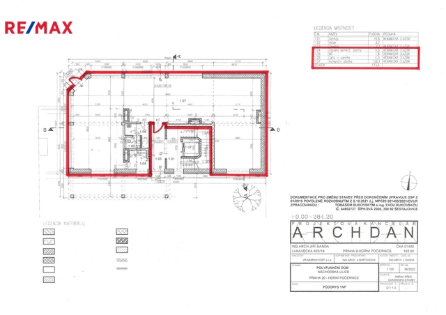 Ve 3NP podlaží je možnost si pronajmout nadstandartní byt 3+kk o velikosti 86 m2 se dvěma balkóny a společnou střešní terasou 62 m2 (ve fotografiích půdorys bytu), dále také skladové prostory v 1. podzemním podlaží domu (ve fotografiích půdorys sklepů):
