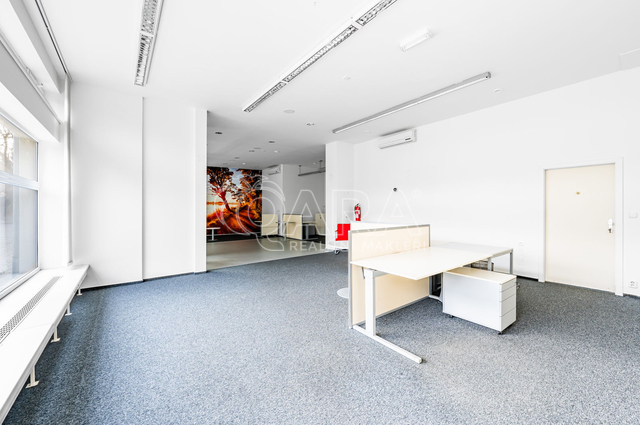 Pronájem obchodních prostor o rozloze 143 m2 v centru Roztok u Prahy. Tyto moderní prostory se nacházejí v přízemí bytového domu na frekventované ulici, což zajišťuje vysokou viditelnost a snadnou dostupnost. Dispozice je velmi flexibilní a nabízí hlavní prodejní plochu s vlastním vstupem z ulice. Dále kuchyňku, kancelář, sklady, serverovnu, komoru a toalety. Díky svému modernímu a vkusnému designu jsou tyto prostory vhodné pro různé druhy podnikání, jako například obchody, ordinace, kanceláře nebo služby. Výhodou je také parkování přímo za budovou. Výborná dopravní dostupnost do metropole jak autem tak veřejnou dopravou (18 min vlakem na Masarykovo nádraží, 10 min autem do Dejvic). Prostory jsou na velmi frekventované ulici. Poplatky: cca 5.030 Kč (domovní služby, voda, topení) + el. energie bude převedena na nájemce. Energetická náročnost budovy: D - méně úsporná. K dispozici ihned.