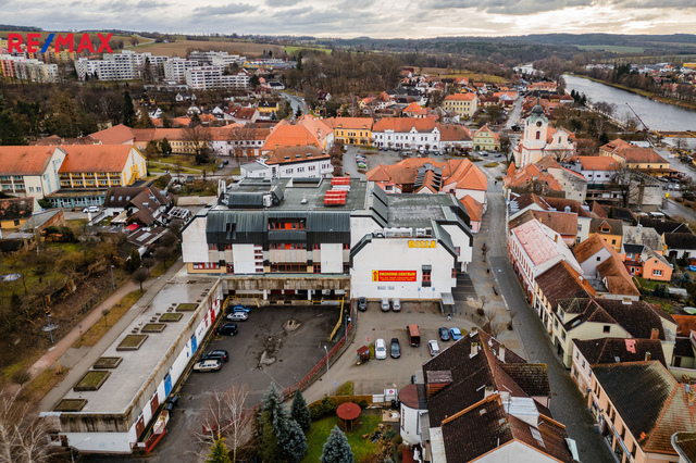 S potěšením Vám představujeme naši exkluzivní nabídku pronájmu obchodního prostoru v srdci Týna nad Vltavou, nacházejícího se v přízemí obchodního domu Bety. Tento prostor disponuje výjimečnými parametry, a to v rámci budovy o celkové zastavěné ploše 2293 m2, postavené na rozlehlém pozemku o celkové výměře 4.755 m2. Celková nabízená plocha činí 1305 m2. Z této rozlohy 1305 m2 připadá na samotnou prodejní plochu 733 m2. Není zahrnuto komunikační prostranství za pokladnami (106 m2) a vstupní oblast (50 m2). Dále k prodejní ploše náleží prostory nezbytné pro efektivní fungování supermarketu. Těmito prostorami jsou přípravna pro lahůdky a pečivo, mrazící a chladící boxy, skladovací prostory pro ovoce a zeleninu, zázemí pro zaměstnance a technické vybavení. Na straně budovy se nachází pozemek o rozloze přibližně 2.400 m2, který je částečně určen pro parkování návštěvníků obchodního domu a částečně pro potřeby zásobování. Tento pozemek sousedí s obecním parkovištěm a společně s vlastní parkovací plochou obchodního domu nabízí velký počet parkovacích míst pro Vaše zákazníky. Obchodní prostor je aktuálně vybaven prodejními regály, pokladnami (bez elektroniky) a dalším vybavením, které bylo dříve využíváno firmou Billa. Toto místo nabízí nejen strategickou polohu v centru města, ale také optimální prostorové uspořádání pro váš úspěšný obchodní provoz.