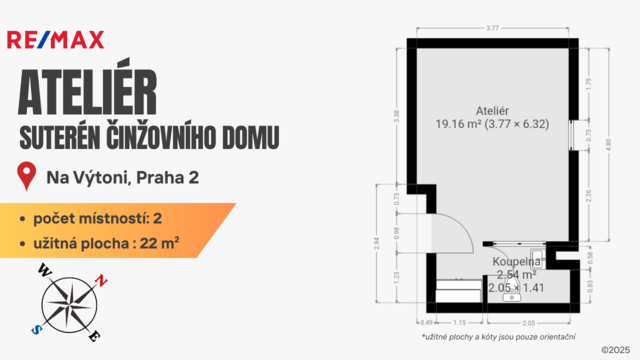 Ateliér k pronájmu v jedné z nejžádanějších pražských lokalit – v suterénu udržovaného činžovního domu v ulici Na Výtoni, jen pár kroků od Vltavy a legendární Náplavky, s možností občasného přespání. Prostor o velikosti cca 22 m² je zkolaudovaný jako ateliér, má vlastní koupelnu a kuchyňskou linku se dřezem, takže je ideální jako zázemí pro tvůrčí práci, kancelář freelancera či menší studio, kde nájemce může po dlouhém dni pohodlně zůstat přes noc. Přísun světla zde zajišťuje světlík s otevíravým oknem v kombinaci s umělým osvětlením. Výtoň patří k nejatraktivnějším a nejživějším částem Prahy – v docházkové vzdálenosti je historické centrum, Vyšehrad i Podolí a přímo u domu je tramvajová zastávka Výtoň s rychlým spojením do celé Prahy. Náplavka na Rašínově nábřeží nabízí celoročně unikátní atmosféru: bary a kavárny na lodích, posezení u vody, kulturní akce i večerní život s výhledem na Pražský hrad. Každou sobotu se zde konají vyhlášené farmářské trhy s desítkami stánků s čerstvými lokálními potravinami, kávou a street foodem, které přitahují návštěvníky z celé Prahy a dělají z této adresy skvělé místo pro život i podnikání. Shrnutí: • ateliér s kuchyňským koutem + koupelna, celkem cca 22 m² • k okamžitému nastěhování • nájemné: 7 500 Kč/měsíc • poplatky za služby a energie: cca 2 500 Kč/měsíc dle počtu osob • suterén činžovního domu • funkční a praktické uspořádání • pronajímá se nevybavený V tomtéž domě je aktuálně k pronájmu také samostatný byt 1+kk, který lze po domluvě kombinovat s ateliérem jako zázemí pro bydlení či kancelář a studio v jednom. V případě zájmu mě neváhejte kontaktovat. Rád Vám poskytnu další informací a byt Vám představím osobně.