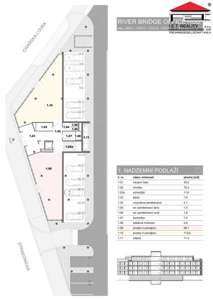 Dovolujeme si Vám nabídnout nové moderní prostory pro fitness/sport nebo prodejnu se sportovními potřebami v přízemí na Praze 5 – Hlubočepy, v blízkosti Dvoreckého mostu, který v dohledné době propojí oba břehy řeky Vltavy. Prostory č. 1.09 o celkové výměře 99,1 m2 se nachází v přízemí administrativní budovy na břehu řeky Vltavy, která se stane součástí areálu River Business Centre. Je možné k nim využívat sociální zázemí o velikosti 66 m2, které se nachází na patře. Služby spojené s užíváním prostorů jsou stanovené na cenu 140 Kč za m2 plochy pronájmu. Areál disponuje recepcí, včetně obsluhy, ostrahou objektu 24/7, výtahem a skvělou dopravní dostupností – navazuje na Strakonickou a pouze pár metrů od kanceláří se nachází zastávka MHD Lihovar. Areál nabízí také parkovací místa – jedná se o krytá i venkovní parkovací stání v areálu a okolí. První měsíce jsou za zvýhodněné nájemné, tedy pouze za 7,99 EUR/m2/měsíc. Volné od 1.3.2026 k nastěhování. Provizi RK neplatíte.