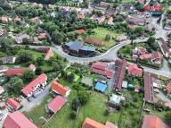 Nabízíme k dlouhodobému pronájmu novou, moderní a energeticky úspornou komerční nemovitost v centru obce Okrouhlo, pouhých 10 km jižně od Prahy. Tato novostavba má dvě nadzemní podlaží, s celkovou užitnou plochou 1076 m². Má dva veliké na sebe napojené sály, lezeckou stěnu, přípravu na 4 bowlingové dráhy, restauraci s barem, ubytování až pro 56 osob, vlastní rybník, tenisový kurt, a minigolfové hřiště. Skeletová konstrukce zajišťuje flexibilitu využití pro různé obchodní a servisní či jiné firemní činnosti. Na pozemku o rozloze 4178 m² je k dispozici parkování pro 19 aut. Budova je vybavena podlahovým vytápěním a třemi tepelnými čerpadly, která ohřívají i teplou vodu, vzduchotechnikou s rekuperací a úsporným LED osvětlením. Bezpečnost zajišťuje moderní zabezpečovací systém. Okrouhlo, obklopené přírodními krásami, nabízí skvělé podmínky pro podnikání i relaxaci. Energetická náročnost budovy je B.