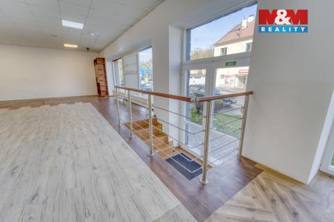 Nabízíme k pronájmu lukrativní komerční prostory o velikosti 135 m² ve vyvýšeném přízemí s rozsáhlými výlohami do hlavní rušné ulice. Součástí je pozemek k parkování nebo možné výstavbě haly/skladu o výměře 500 m². Jedná se o mimořádně viditelnou a frekventovanou lokalitu, která zaručuje skvělou prezentaci Vaší značky. Prostory se nacházejí v moderní, zrekonstruované budově, která nabízí variabilní využití. Tento objekt je nepřehlédnutelný, i díky nově zrealizovanému osvětlení na čidla, takže je objekt po celou noc jemně nasvícený. Působí to esteticky a přitahuje pozornost. Ideální například pro - obchod, showroom, služby, kavárnu či reprezentativní kanceláře. V zadní části prostor je nakládací rampa s elektrickými pojezdovými vraty a pohodlným přístupem pro zásobování a parkování. Měsíční pronájem činí 70.000 Kč + zálohy na energie a služby, vratná kauce 140.000 Kč, provize RK 70.000 Kč + DPH.