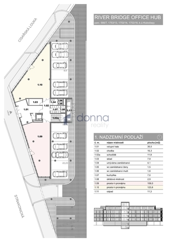 Neplatíte provizi ! Nabízíme k pronájmu komerční prostory o výměře 99 m2, v moderním administrativním komplexu River Bridge Office Hub, Praha 5 – Hlubočepy v ulici Strakonická. Prostory se nacházejí v 1.NP se samostatným vchodem přímo z ulice. Na patře je společná kuchyňka, sprchy a toalety. Budova River Bridge Office Hub je nově projekt administrativní budovy, která se v roce 2026 stane hlavní dominantou areálu River Business Centre. Tento unikátní projekt nabízí moderní a inspirativní pracovní prostředí na břehu řeky Vltavy v bezprostřední blízkosti Dvoreckého mostu. Výhled na řeku Vltavu, Vyšehrad, ale i blízkost všech potřebných služeb, stejně tak i výborná dostupnost MHD, předurčuje budovu River Bridge Office Hub k naplnění požadavků i těch nejnáročnějších nájemců. Budova se nachází ve výborně dostupné lokalitě. Je snadno přístupná z Barrandovského mostu, z dálnice D1 přes městský okruh a také z dálnice D5 ve směru od Plzně. Stanice metra Smíchovské nádraží a tramvajová zastávka se nachází v bezprostřední blízkosti. Lokalita prochází dynamickým rozvojem a nabídne širokou škálu služeb, restaurací a občanské vybavenosti. Prostory jsou vhodné pouze na obchod se sportovním zbožím nebo pro provoz sportovních aktivit, cvičební studio, menší fitness či podobný koncept. Prostory budou k dispozici k nastěhování od března 2026.