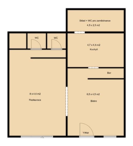 Popis nemovitosti Představuji vám k pronájmu komerční prostory na výhodném místě na náměstí T.G.M. v centru obce Dobřany. Prostory aktuálně slouží jako bistro vietnamské kuchyně, jsou pro tyto účely tedy vybaveny a kolaudovány. V případě zájmu o pronájem prostor je však možné realizovat i jiný podnikatelský záměr, majitel nemovitosti netrvá na zachování vietnamského bistra. Podívejte se ve fotodokumentaci na fotografie objektu. Informace k domu Prostory jsou o celkových rozměrech 120m2, přibližné rozměry místností najdete ve fotodokumentaci u půdorysů. Bistro má dvě hlavní místnosti, WC pro klienty je rozděleno na dámské a pánské. Za barem je vstup do kuchyně a z kuchyně dále do menšího skladu a na samostatné WC pro personál. Topení v objektu zajišťuje elektrokotel. Teplá voda je samostatně v zázemí pro zákazníky řešena bojlerem, kuchyň má vlastní zásobník teplé vody na 200l. Náklady na případné stavební úpravy budou hrazeny dle dohody obou smluvních stran. Nájemné činí 28.000,- / měs. Energie se převádí na nájemce Kauce 3x nájemné Odměna RK 1x nájemné K dispozici od března 2026. Pro pronájem zajistím kompletní realitní a právní servis. Zavolejte mi, nebo napište, domluvíme si prohlídku, prostory Vám ráda ukážu.