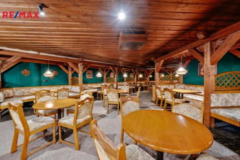 Dispoziční řešení: Hlavní část tvoří restaurace s barem pro cca 70 osob, salonek s kapacitou pro cca 20 osob, prostory přípravny/výrobny, kancelář, chladící box, šatna se sprchou pro personál, WC pro muže, ženy a personál, chodba, úklidová komora, strojovna výtahu, výtah a schodiště.