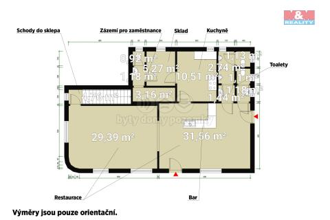 Nabízíme k pronájmu prostory ideální pro restauraci či jiné stravovací zařízení, ale není to podmínkou, prostory můžete využít dle vašeho podnikatelského záměru. Nemovitost se nachází v přízemí cihlové budovy s užitnou plochou 89 m², kde najdeme dvě místnosti pro stravování, vstup na terasu (i z chodníku) a kuchyň s místností na mytí nádobí, v suterénu najdeme dva menší sklady a jeden velký. Prostory lze využít dle potřeb budoucího provozu. Stav nemovitosti je dobrý, což umožňuje rychlé zahájení podnikání. Nemovitost se pronajímá prázdná (kromě baru a digestoře), ale můžete si vybavení z fotografií odkoupit. Díky umístění v frekventované části obce je zajištěn stálý přísun zákazníků. Neváhejte a přijďte si prohlédnout tento prostor s velkým potenciálem pro váš podnikatelský záměr!