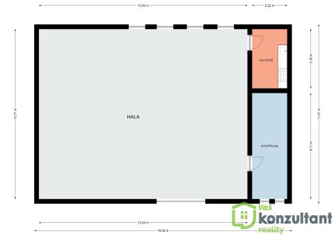 Hala se hodí pro ty kterí potřebují menší provoz, sklad se zázemím nebo lehkou výrobu bez nutnosti velkých úprav.