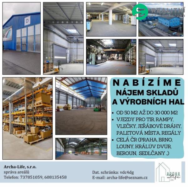 Nabízíme k nájmu výrobně-skladovou halu s moderním zázemím. Areál se nachází nedaleko Prahy, u Rudné na Praze západ. V dostupnosti je Dálnice D5 Praha - Plzeň. Nájem po dohodě, předání 2/3Q 2026. Sklad - výroba: 780 m2 Kanceláře, zázemí: 170 m2 Pozemek d dispozici celkem: 1.514 m2 = Cena nájmu za celek a měsíc 150.000 Kč + energie Hala je izolovaná, výrobní se zátěžovou podlahou v úrovni terénu. Do skladu 3 x vjezdová vrata. Vytápění - plyn. Po hale jsou rozvedeny veškeré sítě. K dispozici 3x odsávání nad pracovním místem, výsuvná rolovací vrata na dálkové ovládání. K hale je manipulační technika - viz foto. V přízemí je zázemí pro zaměstnance, 2x oddělené soc. zařízení, šatny. V prvém patře jsou moderní kanceláře, kuchyňka s jídelnou, odpočinková místnost, ubytování, menší sklady pro administrativu. Vše je plně vybaveno (ale není podmínkou). Okolo haly je manipulační plocha cca 1514 m2, zámková zátěžová dlažba. Areál je průjezdný i pro TIR. Nájem po dohodě - předání 2/3Q 2026 Provizi neplatíte Archa-Life, s.r.o. správa areálů Telefon: 737851059, 608135458 IČO: 19884931 Dat. schránka: vdc4dg E-mail: archa-life@seznam.cz https://www.facebook.com/Archa.Life.sklady Č.: RS705543