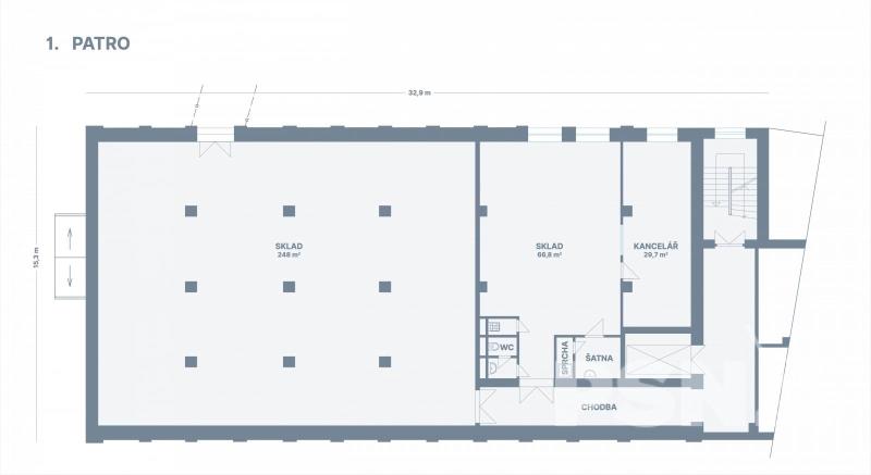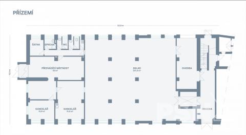 Nabízíme k pronájmu čtyřpodlažní vytápěnou halu s vlastním zázemím a nákladním výtahem, určenou ke skladování či výrobě. Hala má samostatný vstup i vjezd na vlastní pozemek, který nabízí dostatečný manipulační prostor i možnost parkování pro několik vozidel. Celkem hala nabízí užitnou plochu 1451 m2, z toho suterén má výměru 319 m2, přízemí nabízí showroom/prodejnu s vlastním vstupem z ulice o rozloze 53 m2, kanceláře 48 m2 a celkovou výměru 312 m2. První patro má výměru 397 m2 a druhé patro 378 m2. K hale rovněž náleží pozemek se samostatným vjezdem o rozloze 530 m2, který lze využít pro parkování. Každé podlaží disponuje vlastním zázemím a je vytápěné. Zálohy na spotřebu energií a služeb budou stanoveny dle typu provozu.