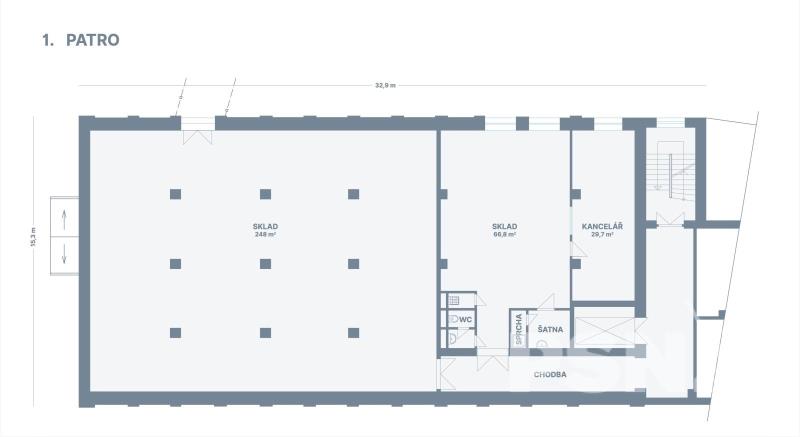 Nabízíme k pronájmu celé 2.NP s vlastním zázemím, v hale s nákladním výtahem, určené ke skladování či výrobě. Hala má samostatný vstup i vjezd na vlastní pozemek, který nabízí dostatečný manipulační prostor pro zásobování. Celé 2.NP nabízí užitnou plochu 397 m2, které jsou rozděleny do několika místností. Samostatné podlaží disponuje vlastním zázemím a je vytápěné. Zálohy na spotřebu energií budou stanoveny dle typu provozu. Možnost dodatečného pronájmu parkovacích stání uvnitř areálu.