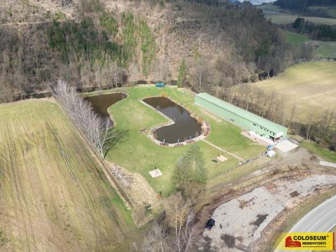 Exkluzivně nabízíme k pronájmu komerční areál na okraji městyse Nedvědice, nacházejícího se na pomezí Jihomoravského kraje a Vysočiny, nedaleko Tišnova a Bystřice nad Pernštejnem. Celková plocha pozemků činí 19 015 m², z toho je přibližně 14 500 m² oploceno. Součástí oplocené plochy je dvoupodlažní hala kolaudované v roce 2017, která sloužila k celkovému turnusu odchovu ryb od líhně až po tržní rybu. V hale je umístěna technologie pro odchov ryb a funkční biologické čističky. Množství vody je dostatečné k jakémukoliv chovu vodních živočichů, ale i k dalšímu výrobnímu využití. Celková užitná plocha haly je 1 382 m², kromě nádrží na odchov ryb se zde nacházejí i kancelářské prostory a sociální zařízení včetně bytu pro zaměstnance. Hala je zateplena 100 mm polyuretanovým panelem, nosnost podlah je 2 000 kg/m². Venkovní manipulační plocha je tvořena betonovou deskou, areál je přizpůsoben na vjezd kamionů. Na pozemku se nachází vlastní studna s kojeneckou vodou, je zde odpadní jímka a elektřina. Na střeše haly je schválena instalace FVE. Areál je přístupný 24/7. Součástí areálu jsou dva sportovní rybníky, posezení pro hosty, pergola a dětské hřiště. Výše měsíčního nájemného činí 50.000,- Kč, elektřina bude přepsána na nájemce. Průkaz energetické náročnosti nebyl dodán, z toho důvodu je uvedena třída G. Pro více informací nebo sjednání termínu prohlídky neváhejte kontaktovat realitního makléře.
